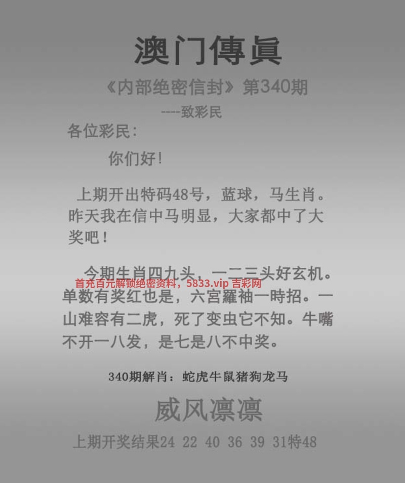 339期:绝杀三肖💫【牛鼠鸡】💫开:马48准